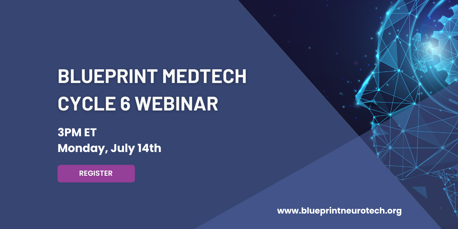 Have questions about the current Cycle 6 Blueprint MedTech funding opportunity? Attend our informational webinar on Monday, July 14th at 3 PM to help you better understand the program, the process for applying, and much more. A recording will be shared with all registrants.